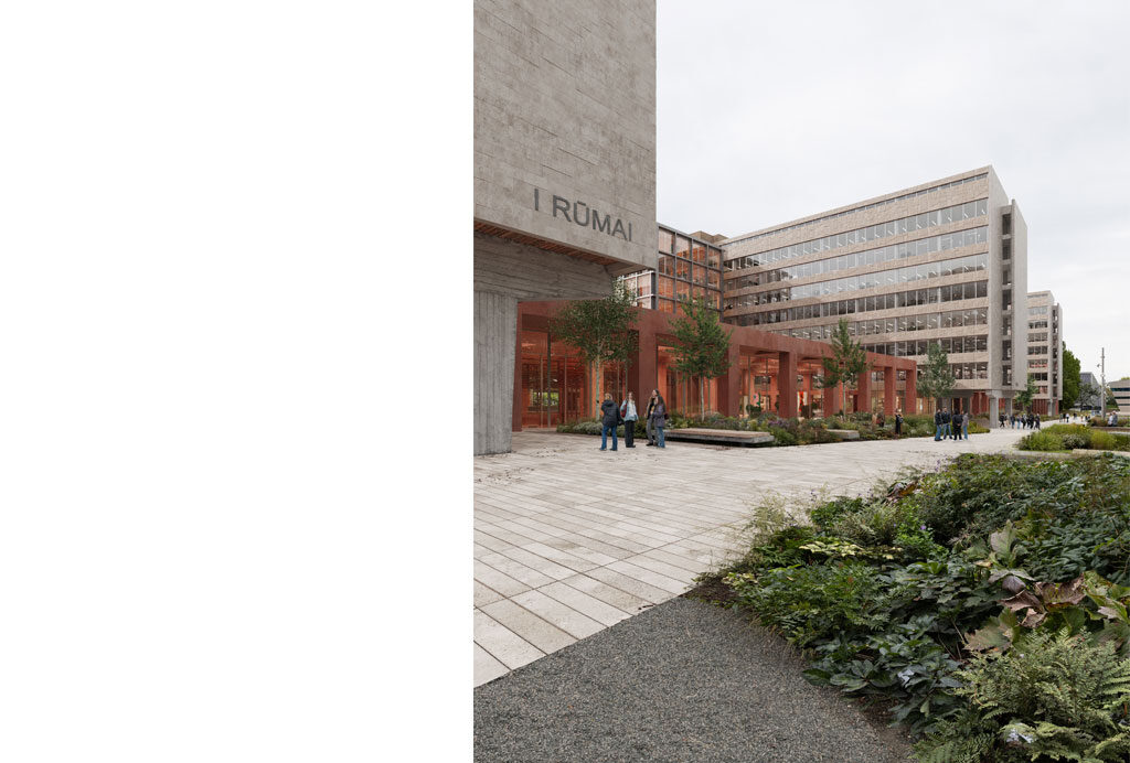 - Preservation of the original composition and architectural elements of the modernist faculty buildings, while introducing contextual new elements to enhance their functionality and quality.